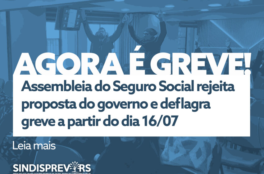 Agora é Greve! Assembleia do Seguro Social rejeita proposta do Governo e deflagra GREVE a partir do dia 16/07. Confira as informações da Assembleia! A Assembleia Específica do Seguro Social ocorrida nesse sábado (06/07) no SindisprevRS de forma híbrida (presencial e virtual) decidiu recusar a proposta de acordo apresentada pelo governo na terceira rodada da […]Read More