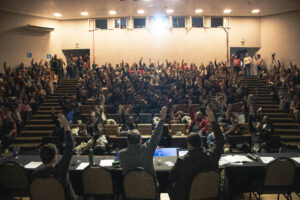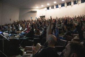 A plenária final do XVIII Congresso Estadual do Sindisprevrs foi para a leitura e aprovação dos relatórios dos Grupos de Trabalho.