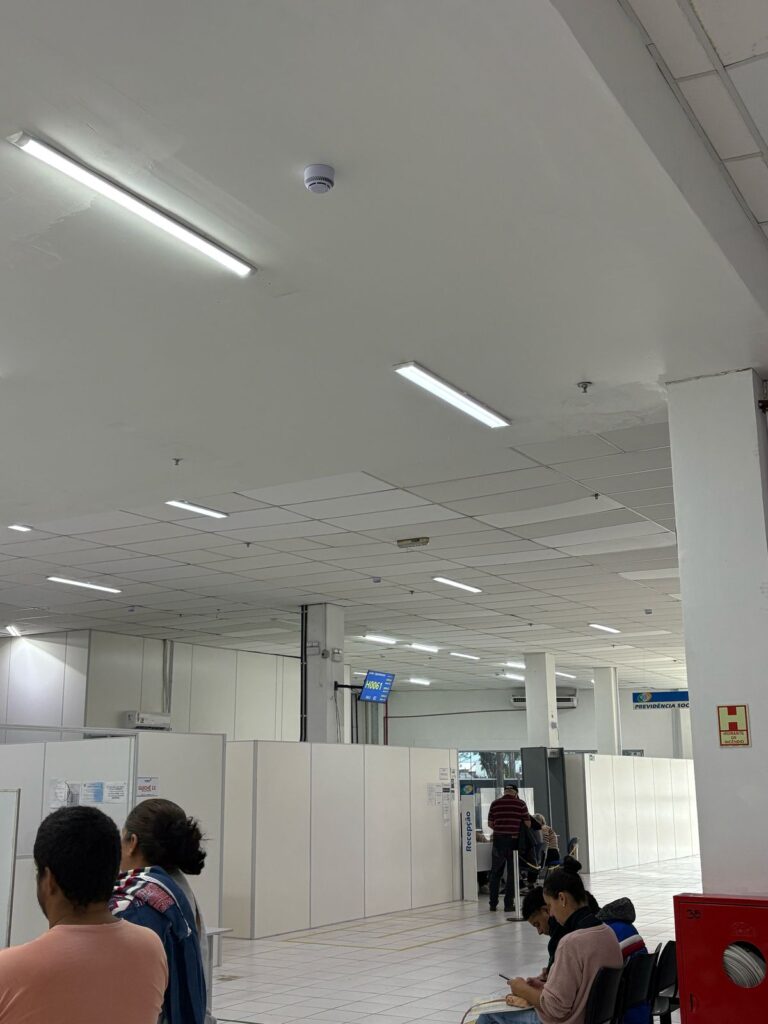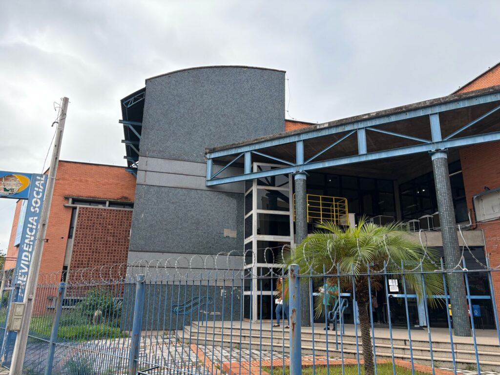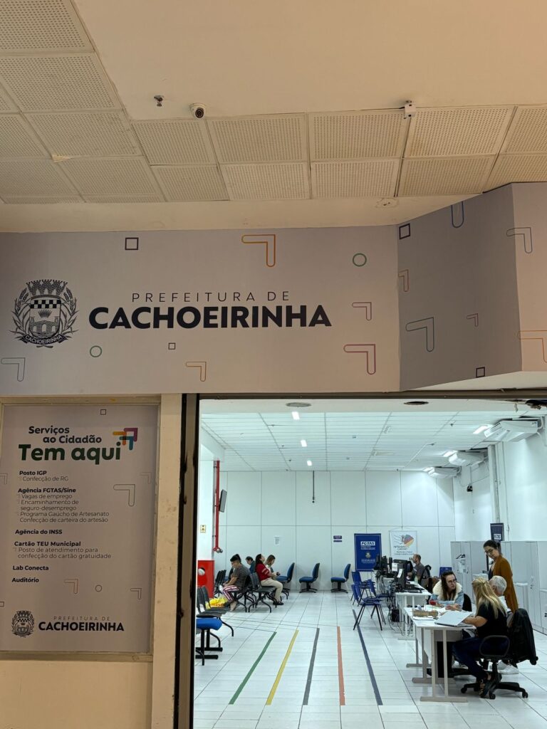 - Funciona de forma improvisada em um shopping desde que a agência original foi inundada durante a tragédia climática de maio de 2024;