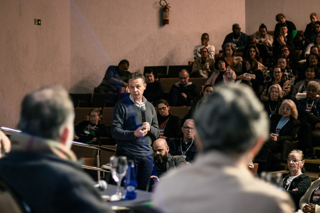 Na sua fala, Plínio Arruda Jr. enfatizou uma das suas principais preocupações frente ao cenário político atual. “Nós estamos em uma correlação de forças que está muito a favor da direita. O debate nacional está completamente refém do capital. Agora eles estão dizendo que é preciso de ajuste fiscal, nova reforma administrativa, reforma trabalhista, tudo que não beneficia os trabalhadores”.