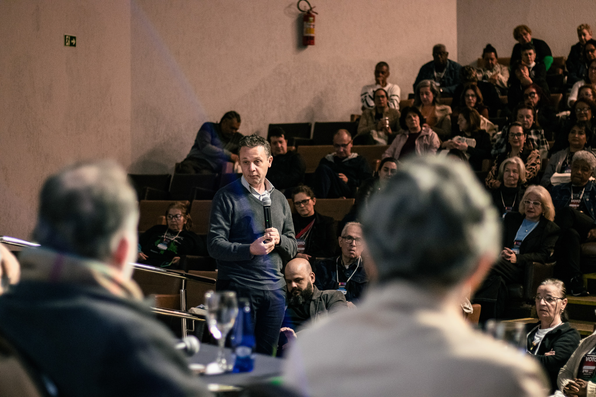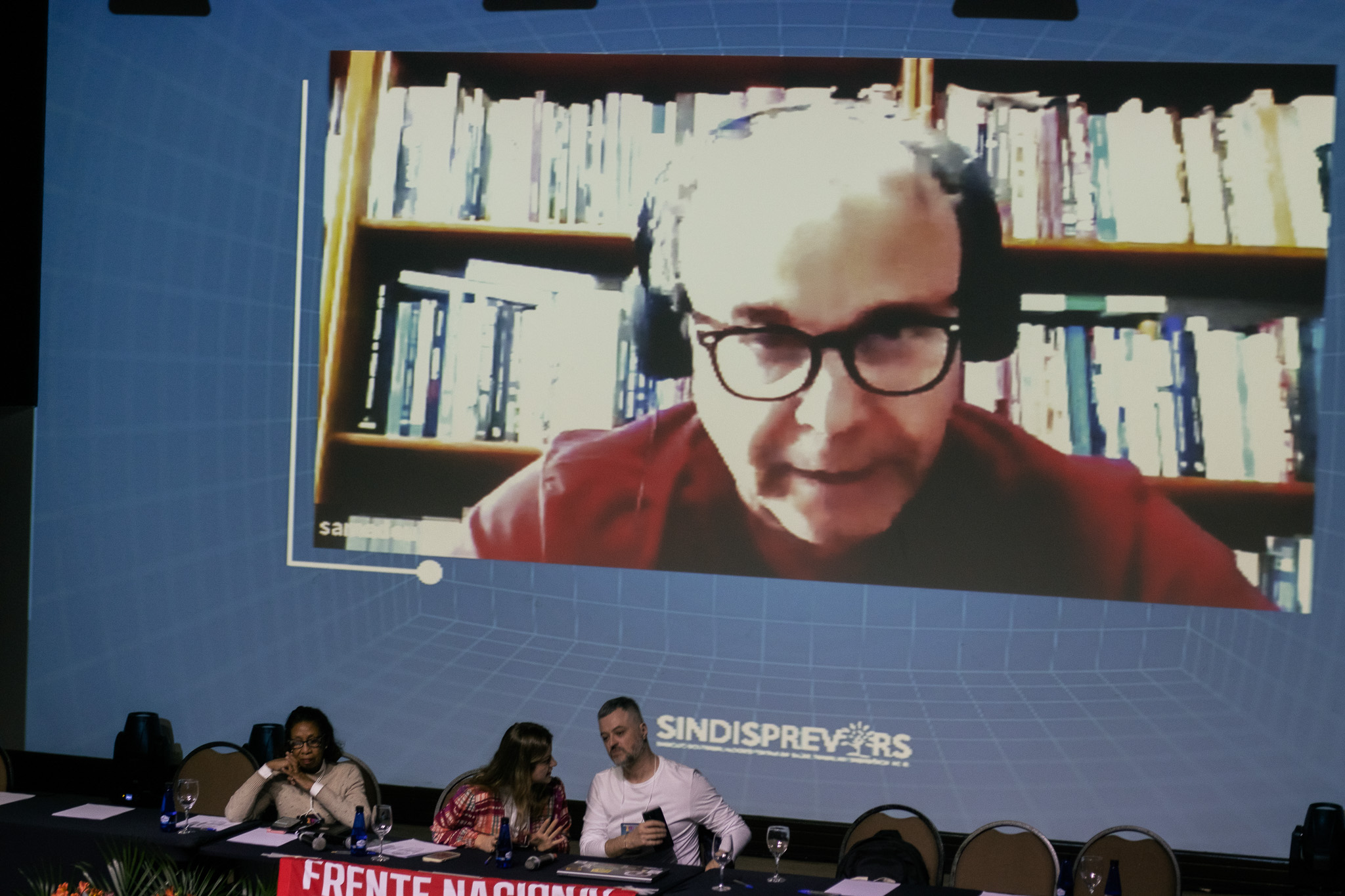 Neste sábado (13), segundo dia do XVIII Congresso Estadual do SindisprevRS, a programação iniciou com a plenária de conjuntura: “A crise, a defesa das liberdades democráticas e a construção de uma alternativa dos trabalhadores”, com a participação do economista, pesquisador e professor, Plínio de Arruda Sampaio Jr., e do professor e mestre em Ciências Sociais, Rogério Silva.