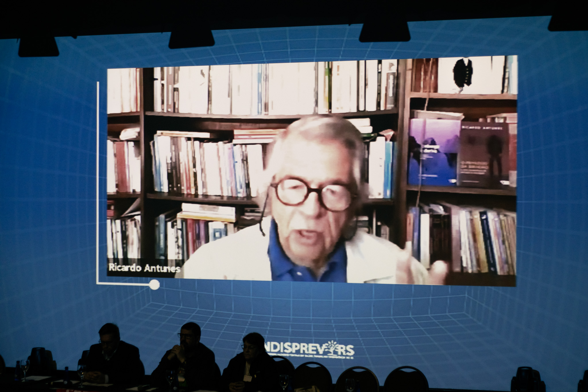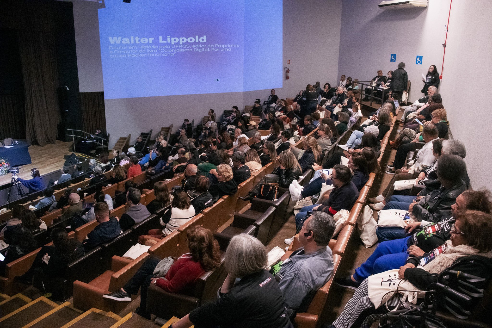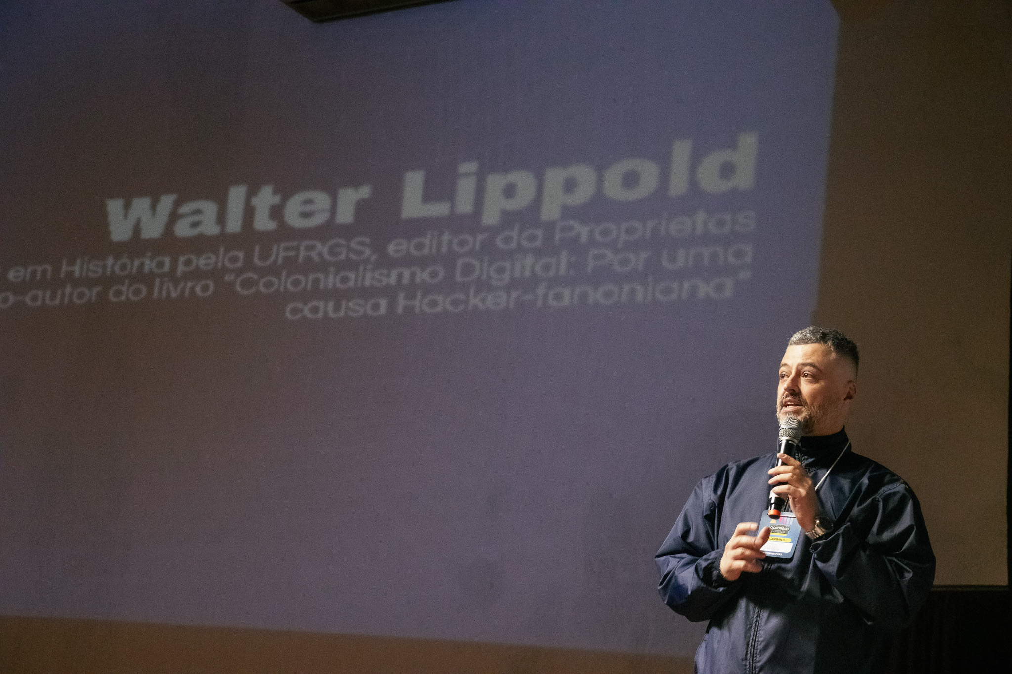 A última plenária foi sobre Inteligência Artificial, “Trabalho e tecnologia: dos novos meios produtivos à Inteligência Artificial”, que teve como palestrante o doutor em história Walter Lippold e a participação online do Doutor em Ciência Política Sérgio Amadeu da Silveira.